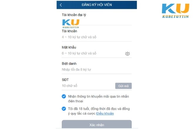 Với mục tài khoản đại lý: Thông tin này mọi người có thể bỏ qua hoặc giữ nguyên nếu như đăng nhập vào Kubet thông qua các đại lý